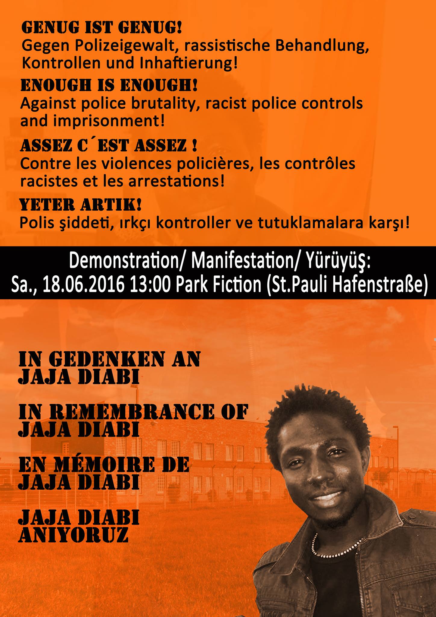 On June 18 a network of different groups organises a demonstration to commemorate Jaja. It will start at Park Fiction 1p.m.