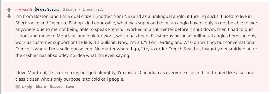 Nathan hides his white supremacist activity behind an array of usernames and across multiple sites. One site that he frequents is Reddit, which he interacts as “Elksworth.” His views are on full display here. In one post, Nathan remarks that antisemitism should be ‘common sense.’ Another post is a long-winded rant in which he complains that he, a “unilingual Anglo,” is treated as a second-class citizen in Quebec due to his limited French knowledge, despite being “as Canadian as everyone else.” He has contributed to several explicitly fascist threads, like “r/debatefascism,” and describes himself as an “absolute authoritarian.” Nathan also shows interest in leaving Canada and has posted on Reddit about moving to Seattle or China.