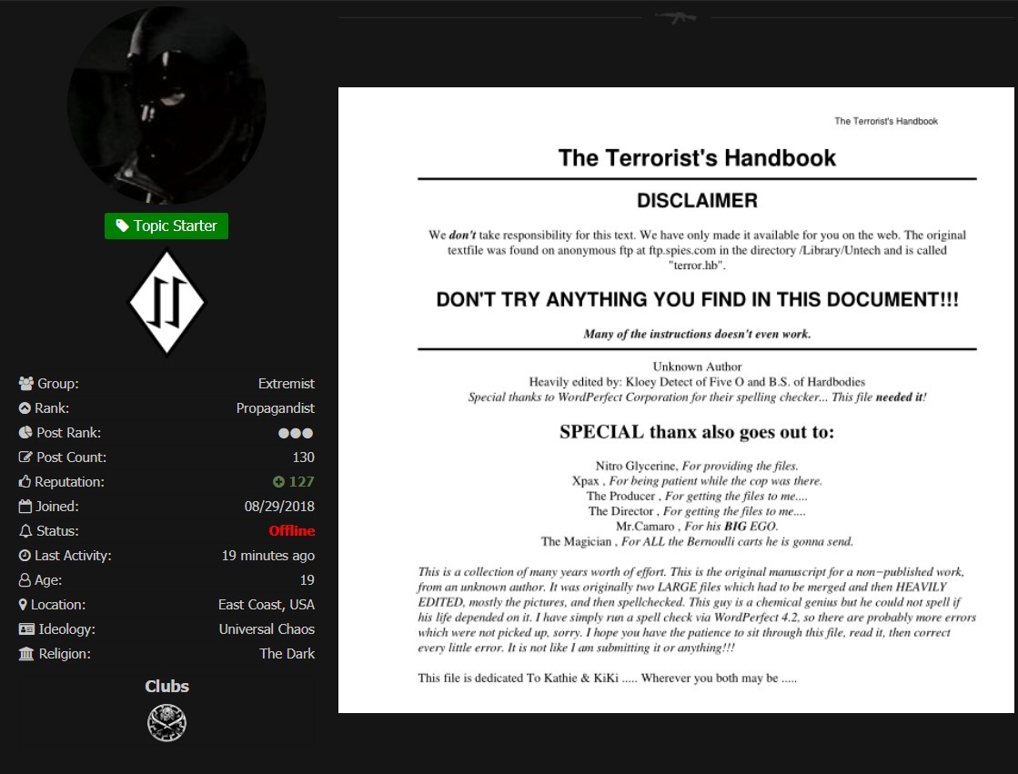 Nathan Guerrette aka “IronWill” responds to an user posting a document showing how to carry out terrorist attacks