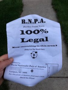 (Racist Fliers found in Cheektowaga, August 16, 2019.)
