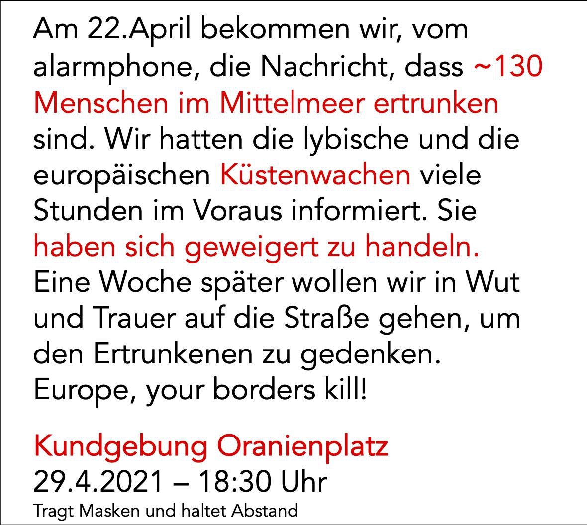 Und deshalb wissen wir auch, was Solidarität bedeutet; wem sie gehört! Wir laden euch ein, gemeinsam mit uns am 1. Mai ein Zeichen zu setzen und die Tradition der internationalen, revolutionären Kämpfe unserer Vorfahren und Vorgänger*innen fortzuführen!