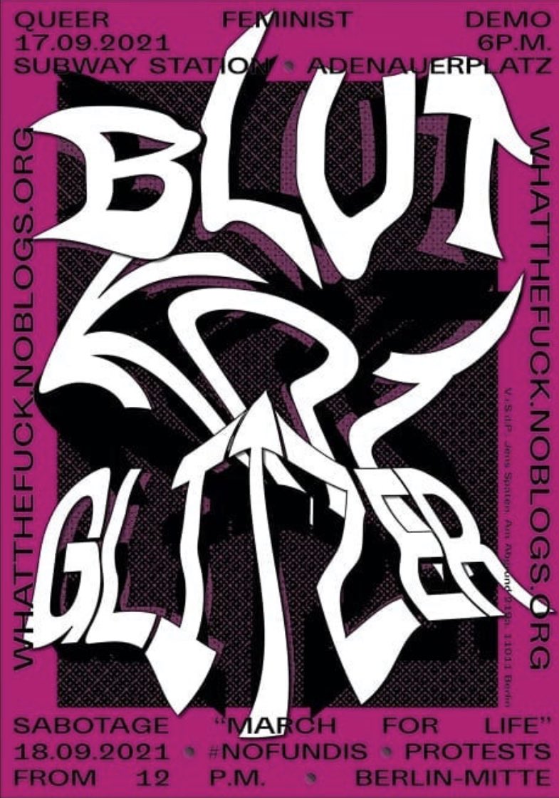 „Blut – Kot – Glitzer – Proteste! Gegen den „Marsch für das Leben“!“