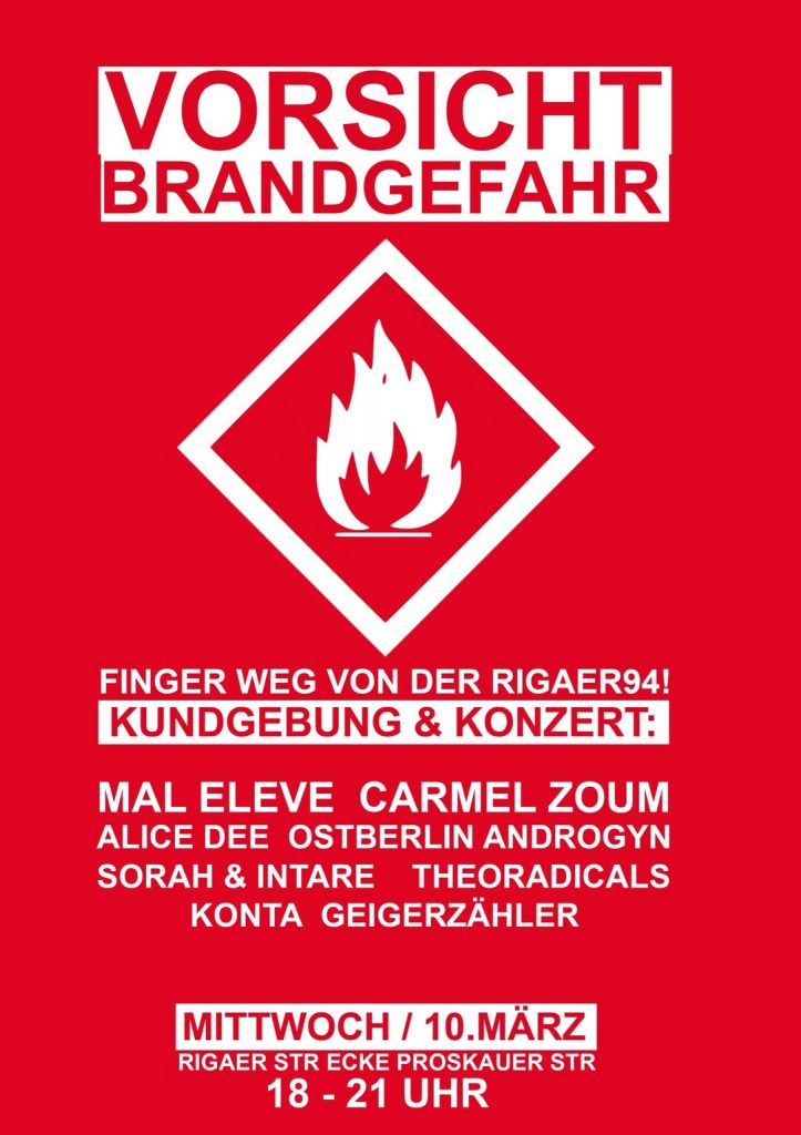 Vorsicht Brandgefahr – Finger weg von der #Rigaer94! Kundgebung und Konzert: