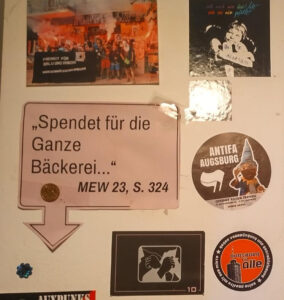 Die „Initiative für ein selbstverwaltetes Zentrum in Augsburg“ gibt es heute nicht mehr, dafür den Kulturladen in Selbstverwaltung „Die ganze Bäckerei“,