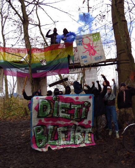 Dieti bleibt in jedem ängstlichen Zucken, in den Narben der Traumata, die uns Repression beifügten. Im Bewusstsein darüber, dass die Polizei uns Leitern nahm die wir brauchten um zu fliehn, dass sie uns unsere Würde nahm, Rechte brachen und Lebensgefahr als akzeptable Drohung sahen, und kalkuliert implementierten.