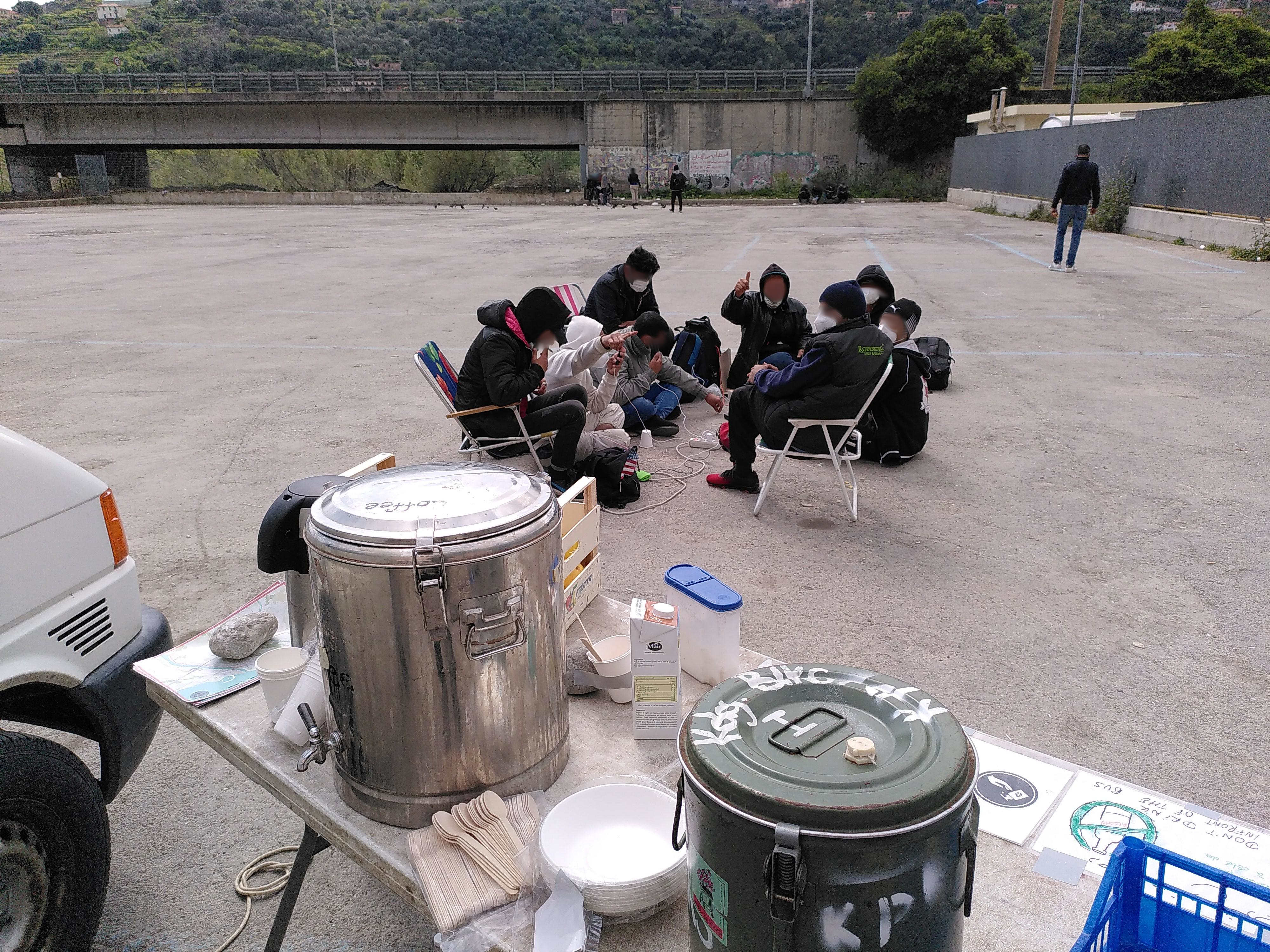 Ventimiglia ist eine Stadt mit (offiziell) ca. 24.000 Einwohner*innen in der Provinz Imperia in der Region Ligurien und ist ca. 20km von der französischen Grenze entfernt. Viele Menschen die aus ihren Heimatländern fliehen mussten, kommen auf ihrem Weg in ihre Zielländer, über die Balkanroute oder das Mittelmeer nach Italien. Hier in Ventimiglia hängen die people on the move/refugees fest, weil das erfolgreiche überqueren der Grenze schwer und gefährlich ist und täglich Menschen von Frankreich nach Italien illegal gepushbackt, also ohne die Möglichkeit einen Asylantrag zu stellen zurückgeschickt werden.