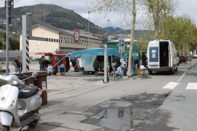 Seitdem wir in Ventimiglia sind dreht sich unser Alltag um die Lebensrealitäten der people on the move und die Abgründe, die Staatssysteme auf die Existenzen vieler Menschen werfen. Jedem Tag treffen wir Personen, die uns von ihren Erfahrungen, die sie auf der Flucht nach Europa oder auf der Flucht vor einer Abschiebung aus Europa, erzählen – diese sind gezeichnet von Dramatik und von Absurdität kaum zu überbieten. Die Menschen sind mit Wohnungslosigkeit, Hunger, hygienischer und medizinischer Unterversorgung und emotionaler Überbelastung und Traumatisierung konfrontiert.