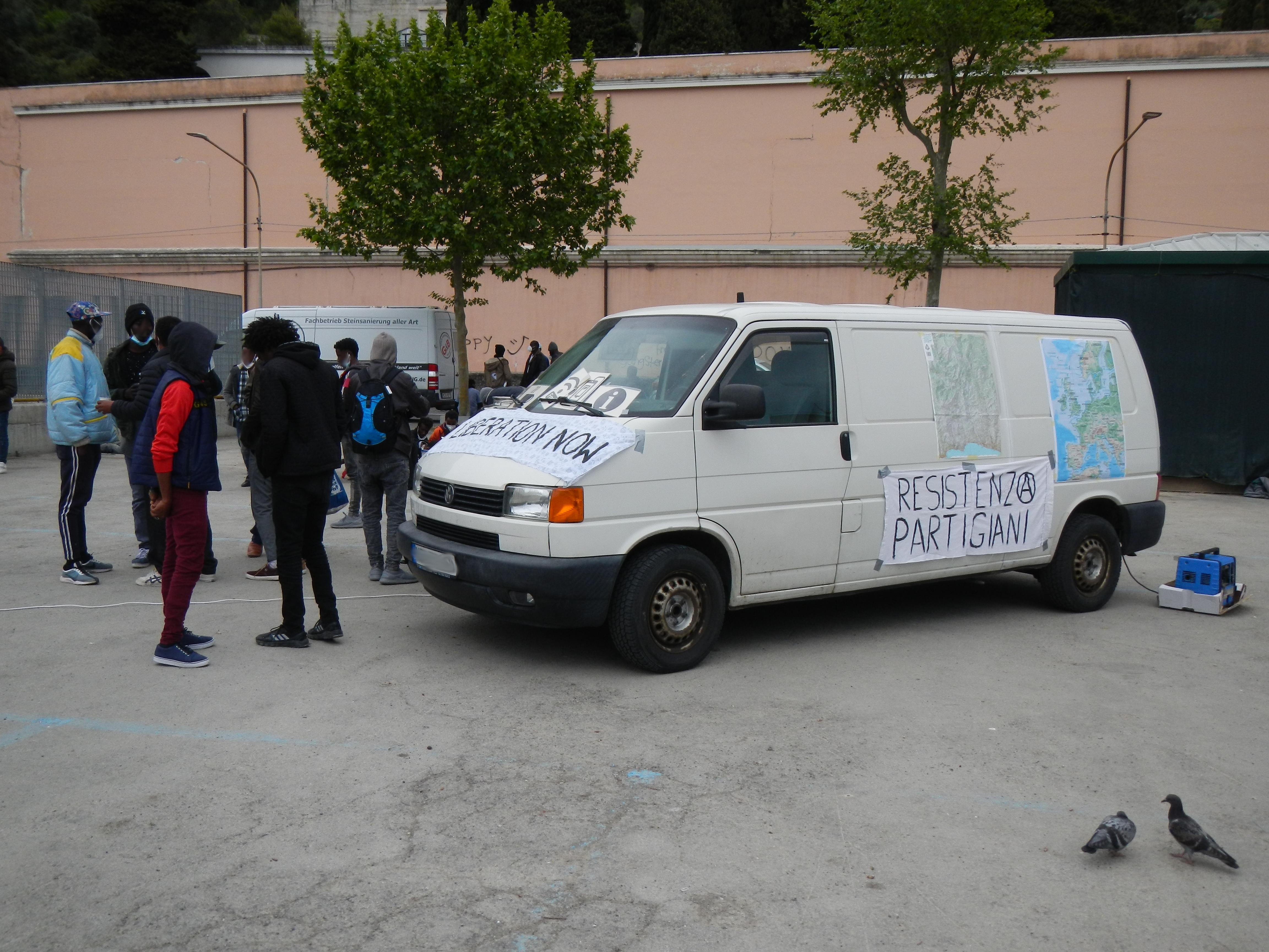 In accordance to the Day of Deliverance of Italy we participated in the memorial of vicims of fascism and resistance fighters. We made a banner and put it up at the Distrubution Point in Ventimiglia. There where other groups at the place that also brought banners, that they made together with people on the move.