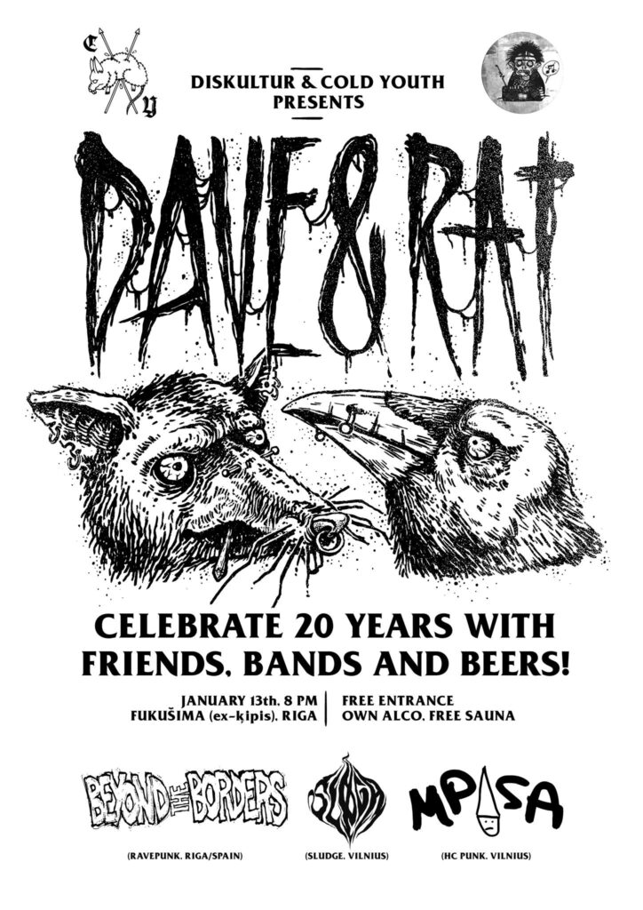 As for now Diskultur consists of 3 people; Dāvis (Dave Raven) – organiser, posters, promo, the “head” of the spider; Barbara – social media, volunteer management, co-organiser Žurka – English translation for books and zines