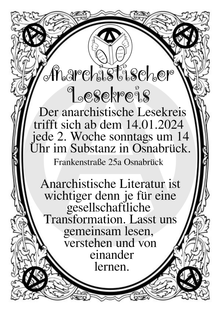So14Jan202414 UhrSubstAnZ, Frankenstr. 25a OsnabrückAnarchistischer Lesekreis