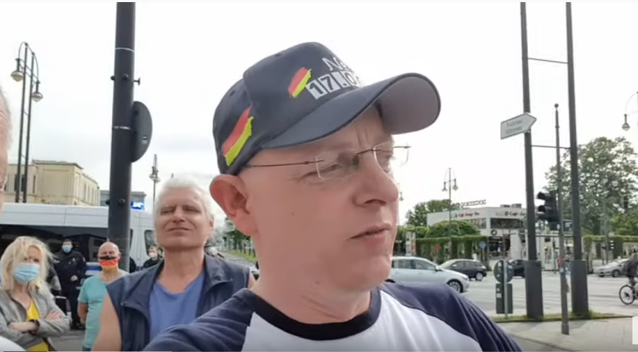 Wirkt wie eine den 90er Jahren entsprungene Neonazikarrikatur: Neonazistiefel, Neonazihose und Neonazihut. In Mecklenburg auf Corona-Demo gut getarnt.