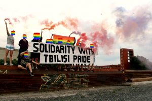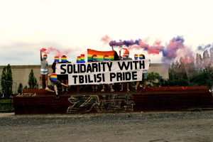 Solidarität mit der Tbilisi Pride! Solidarität mit allen Queers weltweit, die durch Homofeinde und sonstige reaktionäre Arschlöcher bedroht sind.