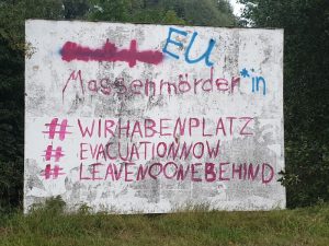 Die Streifenwagenbesatzung fuhr gegen 12:00 Uhr auf dem Hagenweg, als ihnen eine etwa zwei Meter hohe Plakatwand auffiel. Darauf stand unter anderem der Schriftzug „Seehofer Massenmörder“. Die Einsatzkräfte forderten die Bewohner des Geländes auf, den Schriftzug zu entfernen und fertigten eine Strafanzeige wegen Übler Nachrede und Verleumdung zum Nachteil gegen Personen des politischen Lebens. Die weiteren Ermittlungen dauern an. Der betreffende Schriftzug wurde übermalt.