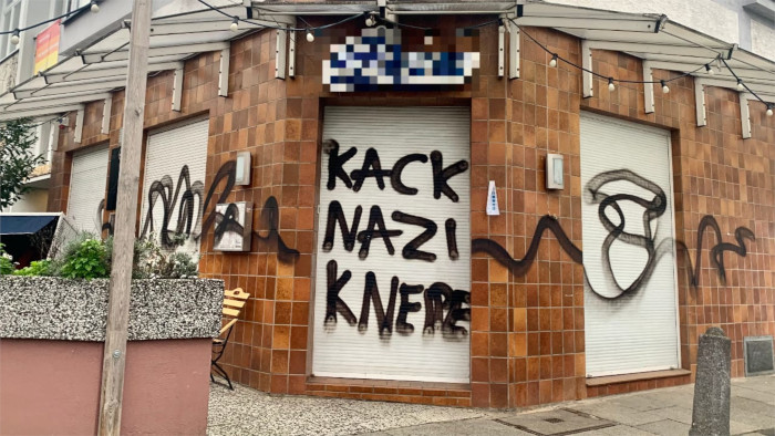 Unbekannte schlugen in der Nacht von Dienstag auf Mittwoch die Scheiben einer Gaststätte in Walle ein und hinterließen den Schriftzug „Kack Nazi Kneipe“.