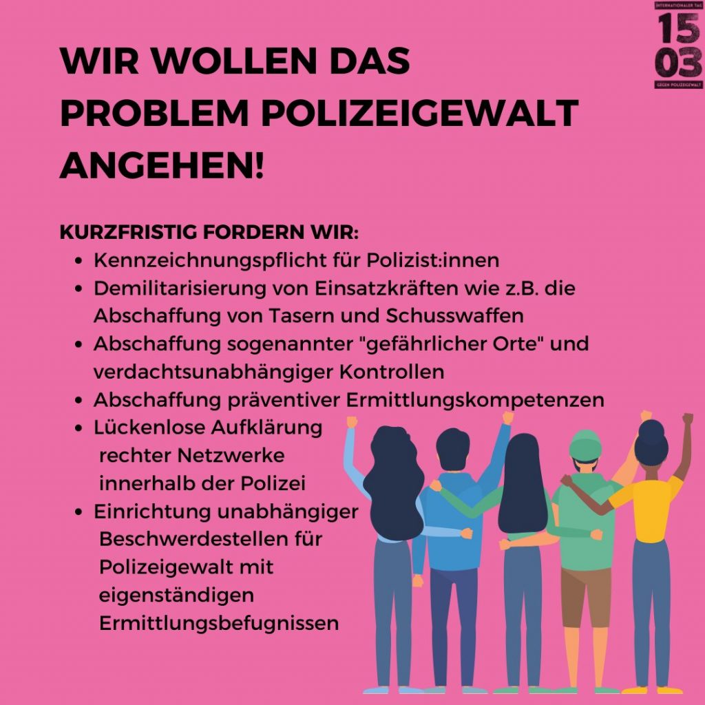 Wir wollen das Problem Polizeigewalt angehen!Kurzfristig fordern wir: