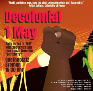 Lasst uns aus einer nicht-dominanten Perspektive und aus der Perspektive derer, die am meisten von Kolonialität betroffen sind für eine gerechte Welt kämpfen! Lasst uns unsere Kämpfe führen ohne koloniale, rassistische und patriarchale Unterdrückungssysteme zu reproduzieren und aufrechtzuerhalten!