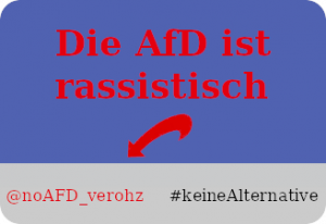 Im September 2021 wird nicht nur der deutsche Bundestag neu gewählt. In Niedersachsen finden auch die Kommunalwahlen statt. Auch die Faschist*innen der AfD Osterholz-Verden werden wieder versuchen, für sich und ihre menschenverachtenden Positionen zu werben, um ihre gesellschaftliche Macht weiter auszubauen. Dieser Kreisverband hat sich in den vergangenen Jahren durch seine Nähe zum rechtsextremen Flügel hervorgetan. Auf dem Twitter-Kanal @noAFD_verohz werden wir euch regelmäßig über den Wahlkampf, die Machenschaften der AfD Osterholz-Verden sowie über Gelegenheiten zum Gegenprotest informieren.