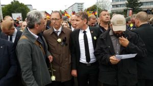 Anfang des Monats demonstrierte die AfD in Chemnitz. Nicht etwa für Trauer oder Mitgefühl mit Hinterbliebenen eines Ermordeten, sondern für das offizielle Zusammengehen zwischen (außer-)parlamentarischer Neurechten und der bundesdeutschen Neonazi-Szene. An ihrem Kopf der thüringische Landtagsabgeordnete und Galionsfigur des völkischen AfD Flügels, Björn Höcke. Was als zufälliges, nur temporäres Zusammengehen zweier vermeintlich unterschiedlicher politischer Lager, durch die AfD inszeniert wurde, entpuppte sich schnell als abgesprochenes Szenario und Kalkül. Bewusst hatten die Köpfe von Pegida und das völkisch-nationalistische Umfeld um Höcke, in Chemnitz den gemeinsamen Schulterschluss mit Neonazis gesucht. Es reihten sich die bekanntesten ProtagonistInnen der verschiedenen neurechten Strömungen und militanter Kameradschaft-Szenen aneinander. Darunter AkteurInnen verbotener Organisationen, wie der “Heimattreuen Deutschen Jugend (HDJ)” oder auch bundesweit bekannte Akteure der “Identitären Bewegung”, wie Martin Sellner, Skandierend verband die diversen Strömungen der Name ihres Gastgebers: “Höcke!“. Continue reading →