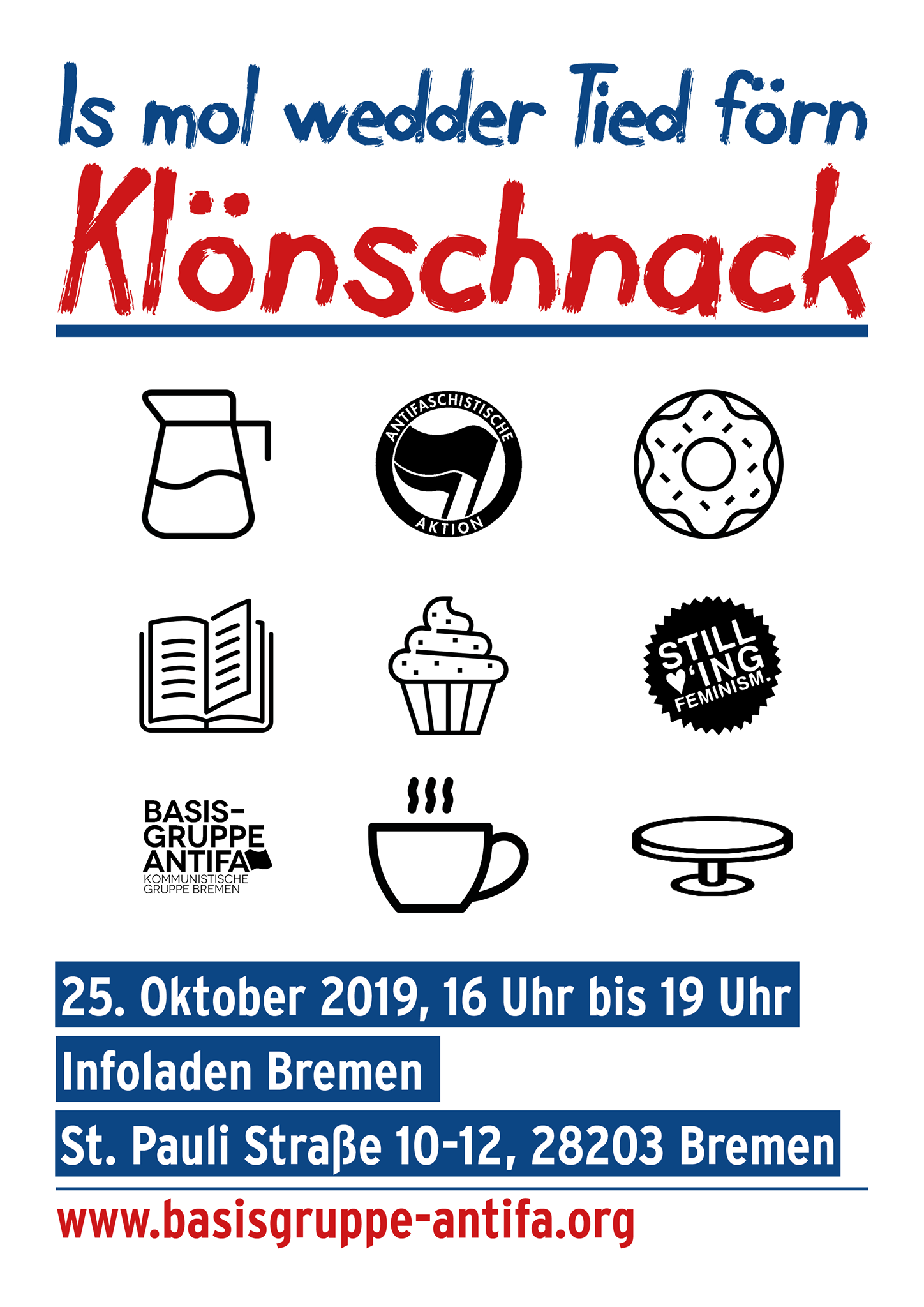 Am Freitag, dem 25. Oktober, ist deshalb wieder Zeit für einen ordentlichen Klönschnack. Zwischen 16 Uhr bis 19 Uhr sind wir bei Kaffee und Tee, Keksen und Cola im Infoladen Bremen (St.Pauli Straße 10-12, 28203 Bremen) für euch ansprechbar. Ab 17.30 Uhr würden wir uns gerne in einer Runde zu diesem Thema zusammensetzen, uns mit euch über den konkreten Stand der Wohnungskämpfe in Bremen austauschen und vielleicht sogar schon erste Verabredungen für nächste weitere Schritte treffen.