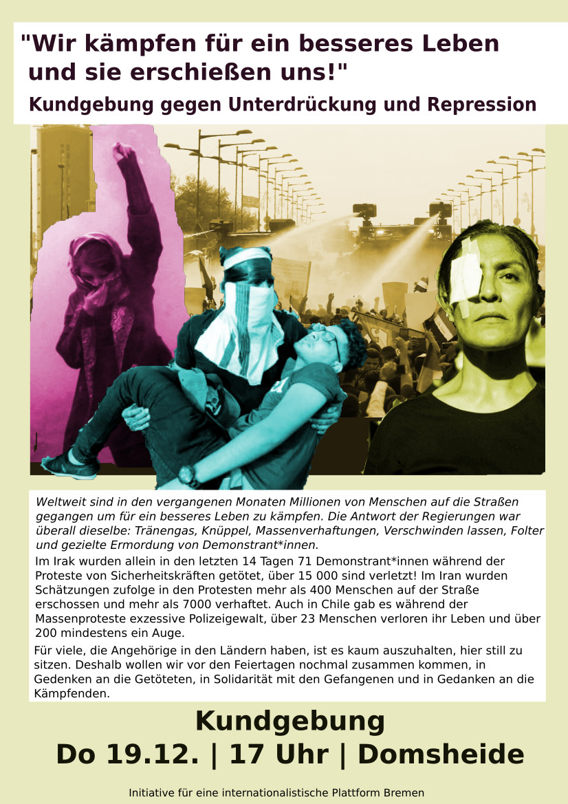 Kundgebung gegen Unterdrückung und Verfolgung der Protestierenden in Irak, Iran, Chile, etc.