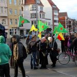 Am Sonntag, den 15.12.2019 haben wir gemeinsam mit Freund*innen, Unterstützer*innen und Interessierten eine bunte Demonstration durch Bremen gemacht. Angefangen am Doventor ging es durch die Martinistraße mit einem Abstecher auf die Wilhelm-Kaisen-Brücke am Wall entlang bis zur Sielwall-Kreuzung. Es sind neben 300Menschen, der Samba-Gruppe „Rhythms of Resistance“ unseren Freund*innen von Bremen für Rojava, 12 Laster mitgefahren.
