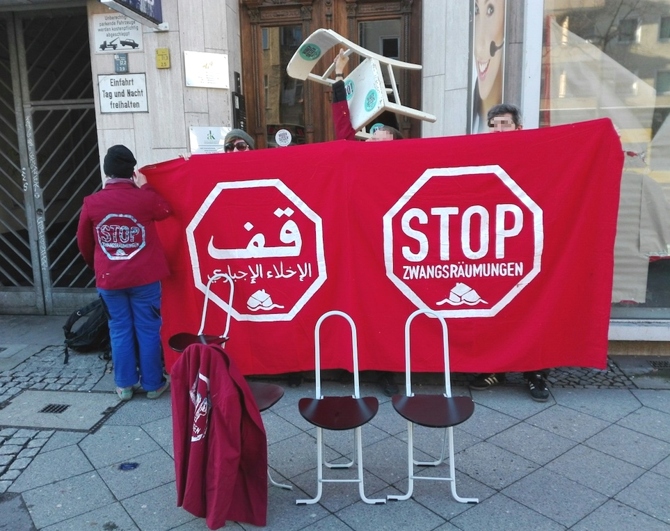 Öffentlichkeitsarbeit um Menschen zu mobilisierenIst eine außergerichtliche Einigung nicht mehr möglich, begleiten Aktivisten des Bündnisses die Betroffenen zum Prozess. „Wir machen in solchen Fällen Öffentlichkeitsarbeit und versuchen, Menschen zu mobilisieren“, sagt Marcel S. Letzter Schritt sei die gemeinsame Blockade. „Hier kommt es darauf an, ob der Betroffene bereit dafür ist. Außerdem informieren wir die Nachbarschaft darüber, was passiert und wer die Verantwortlichen sind“, erläutert er weiter.