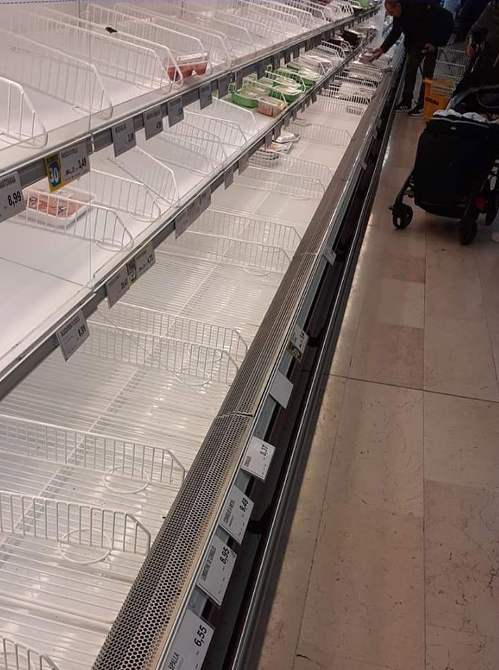Was wird nun passieren, nachdem das von Premierminister Giuseppe Conte unterzeichnete Dekret in Kraft getreten ist? Zusätzliche Beschränkungen und Maßnahmen zur Eindämmung des Virus in der Lombardei werden bis zum 3. April verlängert. Wir brauchen eine Sondergenehmigung, um in eine Region hinein und aus ihr heraus und auch innerhalb der Region zu reisen; die Menschen werden zur Selbstquarantäne aufgefordert; alle Schulen und Universitäten sind geschlossen – wir alle wissen, dass das Studium nicht wichtig ist, warum also nicht die Gelegenheit nutzen, um Eltern und Student*innen, die bereits durch die jahrelangen Haushaltskürzungen erschöpft sind, in den Schlamassel zu ziehen? Bars und Restaurants können von 6 Uhr morgens bis 18 Uhr abends geöffnet bleiben, solange die Kunden einen Abstand von mindestens einem Meter zueinander einhalten können; Theater, Turnhallen, Skigebiete und Diskotheken sind geschlossen, aber alle großen Sportveranstaltungen können hinter verschlossenen Türen stattfinden (das ist Italien – ohne Fußball kann mensch nicht leben); alle öffentlichen Versammlungen sind verboten; keine Hochzeiten und Beerdigungen; mittlere und große Einkaufszentren sind geschlossen, aber nur an Wochenenden und Feiertagen.