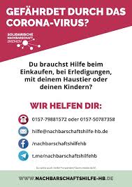 Massenarbeitslosigkeit, Kurzarbeitergeld, Insolvenzen, Mietschulden… Auch vor „Corona“ war Bremen bereits das Bundesland mit der höchsten Arbeitslosenquote, die „Hauptstadt der Zeitarbeit“, mit Spitzenzahlen in der Kinderarmut und steigenden Angebotsmieten. Die mit dem Begriff „social distance“ anglisierte Vereinzelung Tausender droht dies jetzt noch weiter zuzuspitzen. Um so wichtiger ist da praktische Solidarität im Alltag. Zusammenschlüsse wie die „Solidarische Nachbarschaftshilfe Bremen (https://nachbarschaftshilfe-hb.de )“ sind großartig darin eine allgemeine, praktische Unterstützung im Alltag anzubieten. Spezialisierungen wie das „Entlastungstelefon“ der „Solidarischen Psycholog*innen Bremen“ könnten im besten Sinne mit professionellen Angeboten konkurrieren.