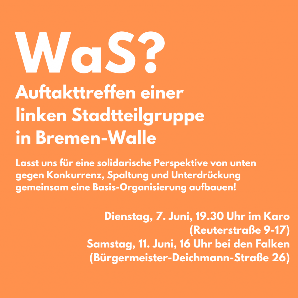 Einladung zum Auftakttreffen einer linken Stadtteilgruppe in Bremen-Walle