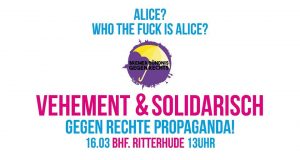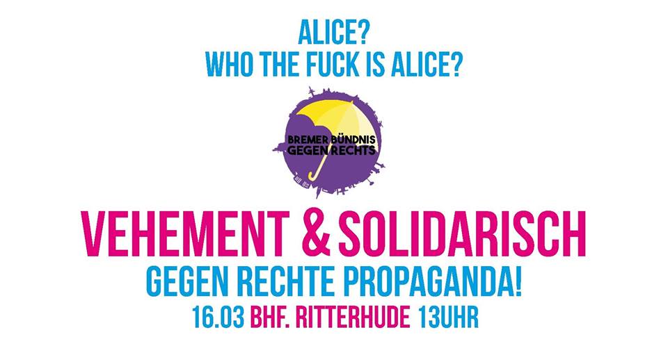 Wir wollen das nicht unkommentiert lassen und rufen zu einer Demonstration gegen rechte Hetze, Rassismus und Antifeminismus auf. Start ist um 13:00 Uhr am Bahnhof Ritterhude.