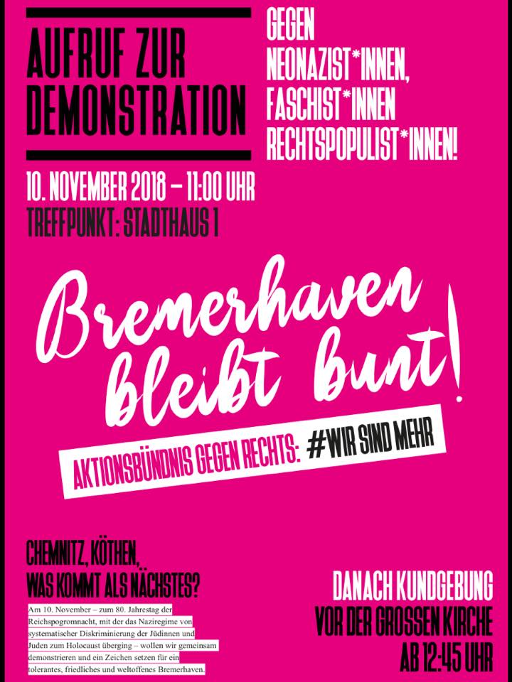 Demo: Bremerhaven bleibt bunt! Wir sind mehr!