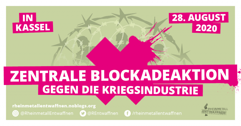 Auch wenn Ohnmacht, Angst und Individualisierung für viele Menschen, uns eingeschlossen, wesentlicher Teil der Corona-Erfahrung war und vielleicht auch noch ist, steht für uns fest: Wir wollen nicht zurück zum Normalzustand, denn er ist das Problem – geprägt von Nationalismus, Unterdrückung und Kriegen. Wir wissen, dass die Kriege auch hier beginnen, hier in Kassel in den Produktionshallen von Rheinmetall und Krauss-Maffei Wegmann (KMW). Wir blockieren diese Konzerne, weil wir den Krieg angreifen, den Nachschub kappen und die Kriegsmaschine lahmlegen wollen. In den letzten Jahren gab es einige Blockadeaktionen in Kassel. An diese und viele weitere Aktionen gegen Krieg und Militär wollen wir Ende August anknüpfen.