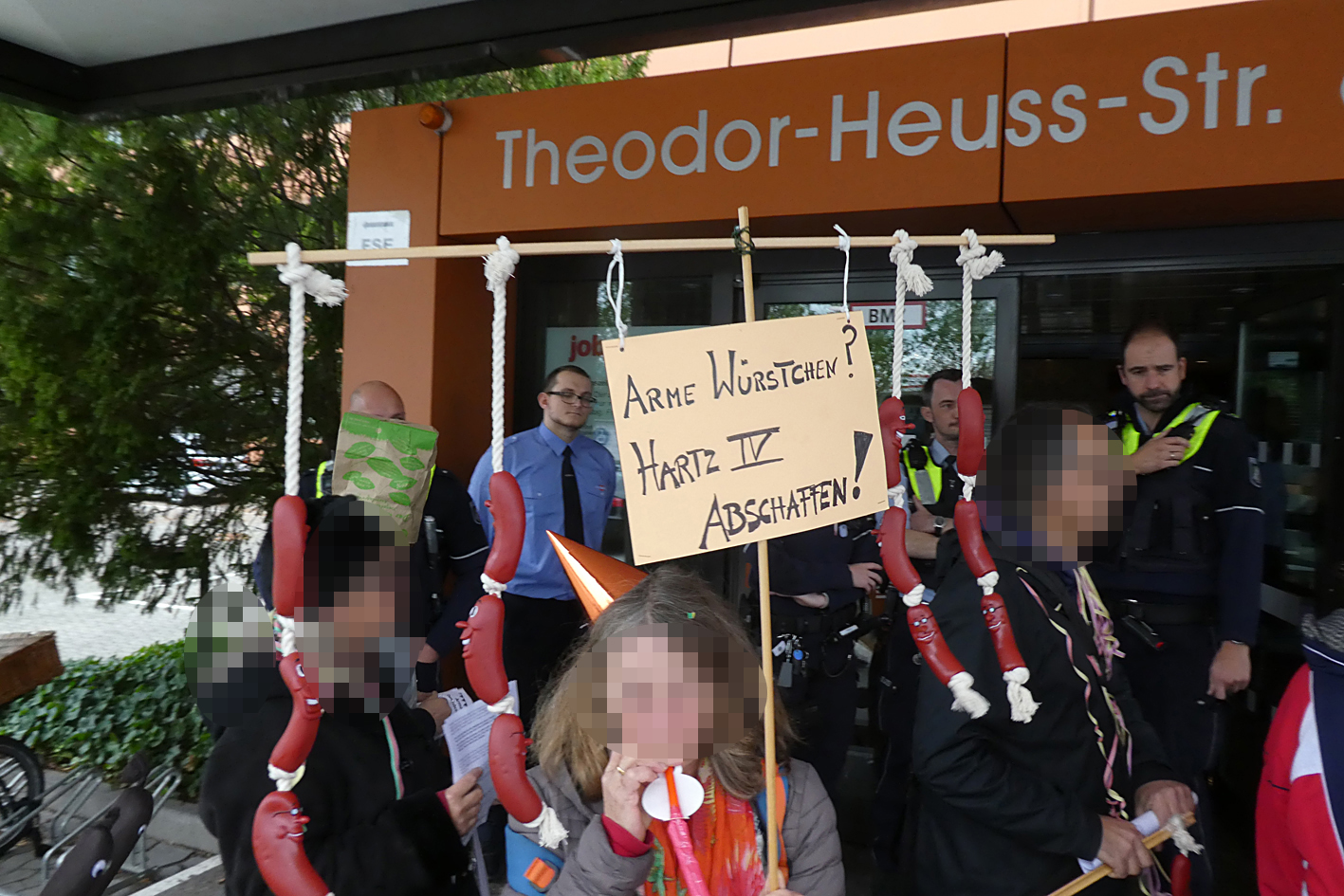 Auch wenn rechtlich darüber gestritten werden könnte, ob es sich bei leitenden Mitarbeiter*innen des Jobcenters nicht um Personen des öffentlichen Lebens handelt, so wurden die Bilder zunächst von uns vom Netz genommen und sind nun verpixelt.
