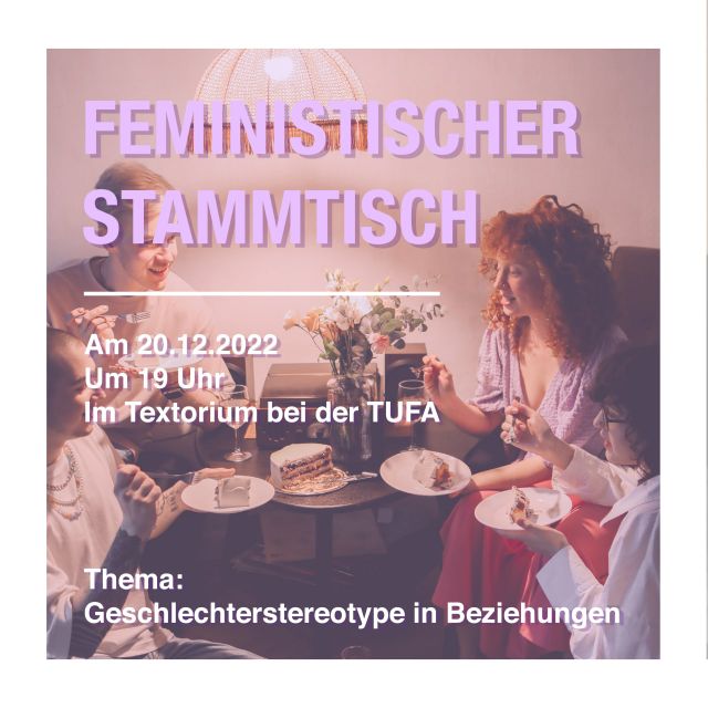 Am 20.12.2022 findet unser letzter #feministischerstammtisch in diesem Jahr statt. Treffpunkt ist um 19 Uhr im Textorium (Wechselstraße 4). Wir holen den ausgefallenen Termin von Oktober endlich nach:
