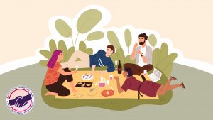 Wir treffen uns um 19 Uhr im Palastgarten neben dem Queergarten und lassen uns dort, wie beim letzten Mal, auf Picknickdecken nieder.