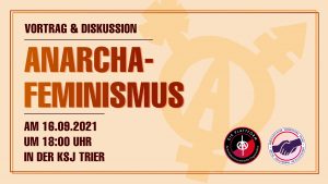 Selbstorganisierte Gruppen mit verschiedenen thematischen Schwerpunkten stellen ihre Arbeit und den Zusammenhang ihres Schwerpunktthemas mit feministischer Arbeit vor. Continue reading Vortrag & Diskussion zu Anarchafeminismus