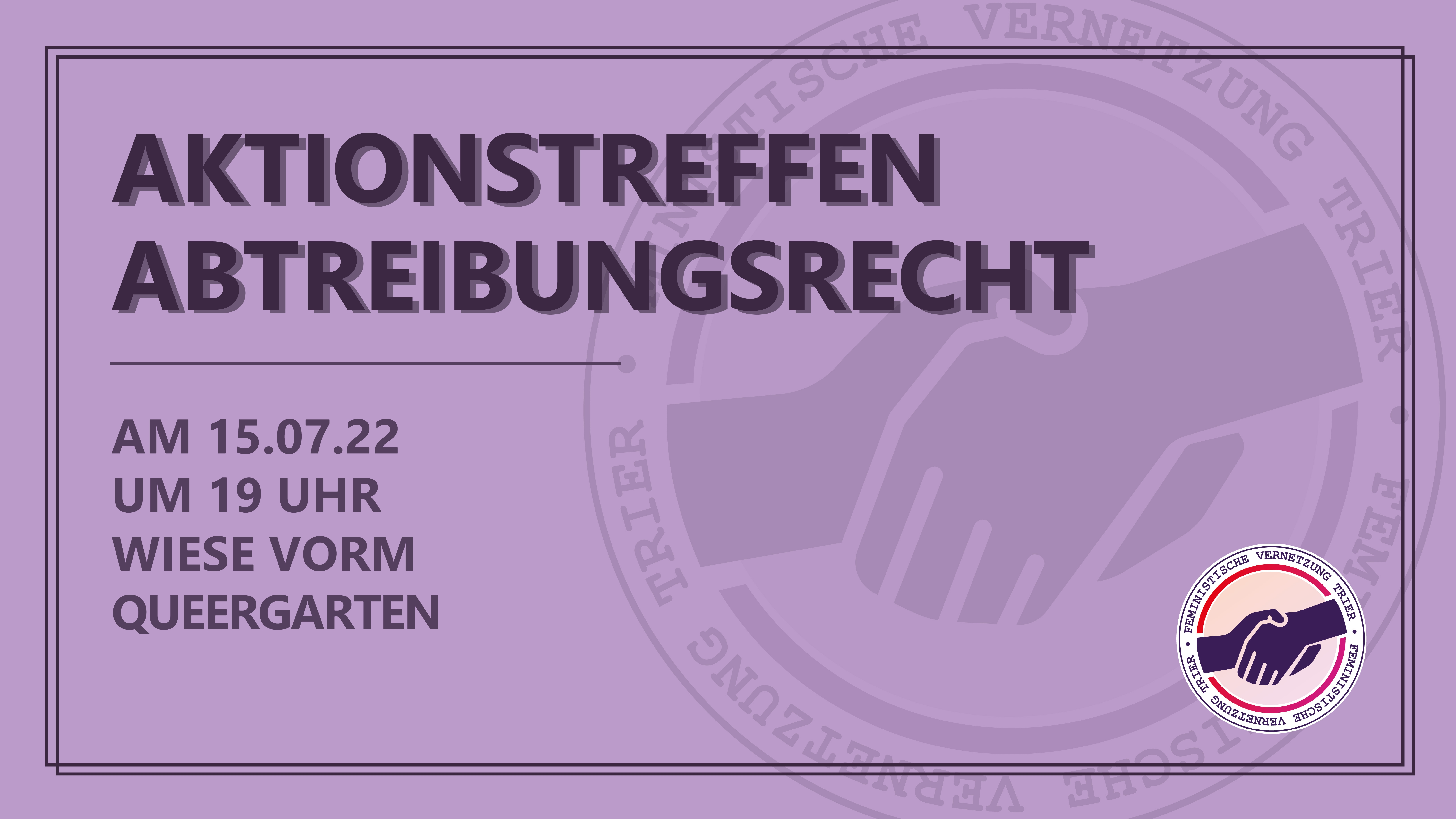 Die Feministische Vernetzung setzt sich in Trier und Umgebung für intersektionalen Feminismus, gegen Sexismus und Patriarchat ein. Das bedeutet, dass das Recht auf körperliche Selbstbestimmung eines unserer wichtigsten Anliegen ist. Wir haben im Juli die AG Schwangerschaftsabbruch gegründet, die sich mit lokalen Akteur:innen vernetzt und sich dafür einsetzt, alle notwendigen Informationen zugänglich und in Trier Schwangerschaftsabbrüche möglich zu machen.