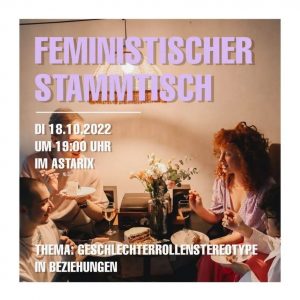 Am Freitag, den 17.09.21 findet wieder unser monatlicher feministischer Stammtisch statt.