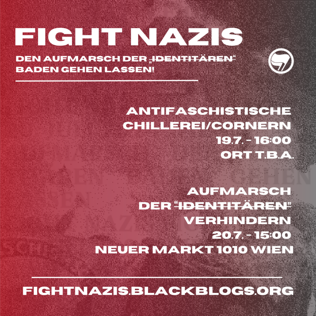Wie weit der gesellschaftliche Rechtsruck derzeit schon vorangeschritten ist, zeigt nicht nur die Übernahme der Rhetorik der extremen Rechten bis hinein ins Parlament und vermeintlich demokratische oder zentristische Kräfte. Die FPÖ, die derzeit in den Umfragen als stimmenstärkste Partei hervorgeht, hat keine Abgrenzungsbedürfnisse zu den Neofaschist:innen, historisch geht die FPÖ sogar direkt aus der Nachfolgepartei der NSDAP hervor. Vielmehr können die „Identitären“ mittlerweile als deren aktivistische Jugendorganisation gelten, personell wie ideologisch sind diese Gruppen beinahe deckungsgleich. Und gerade das macht die Sache so gefährlich, denn es droht erneut eine Regierungsbeteiligung der FPÖ und damit der extremen Rechten in Österreich, die die autoritäre Formierung der Gesellschaft weiter befeuern wird. Dabei hat die extreme Rechte auf institutioneller Ebene ein Heimspiel: Aufgrund der Krisenerscheinungen des Kapitalismus im Weltmaßstab haben autoritäre Antworten Hochkonjunktur. Wir sehen es in den Verschärfungen der Asylgesetzgebungen und den Ausbau der tödlichen Grenzen der Festung Europa. Wir sehen es in einem rassistischen Sicherheitsdiskurs, der soziale Probleme bestimmten Kulturen zuschreibt und damit als unveränderbar darstellt, und als einzige Lösung mehr Polizei forciert. Wir sehen es in einem enormen Anstieg des Antisemitismus, dem „Gerücht über die Juden“ (Adorno), der sich quer durch alle politischen Lager vollzieht und als wahnhafte Welterklärung herhält. Wir sehen es in einer Zunahme antifeministischer und rassistischer Ideologien, die gesellschaftliche Teilhabe und Ansprüche inmitten einer verschärften Konkurrenz über erfundene aber vermeintlich natürliche „Identitäten“ die den Ausschluss und Gewalt gegen die „Anderen“ zu rechtfertigen versucht. Wir sehen es auch in einer autoritären Befriedung gesellschaftlicher Widersprüche, die sozialstaatliche Leistungen mit immer repressiveren Elementen kombiniert. Das sind für eine emanzipatorischen Linke keine rosigen Aussichten. Doch wie immer gilt es, nicht wegen der Macht der Rechtsextremisten und die des Staats, noch der eigenen Ohnmacht die eigenen Ideen einer herrschaftsfreien Gesellschaft über Bord zu werfen und auf falsche, vereinfachte Weltbilder zu setzen. Vielmehr braucht es eine gesellschaftliche Linke, die sich gegen jede Form reaktionärer Ideologien stellt, und gleichzeitig eine Perspektive jenseits der organisierten Traurigkeit des Kapitalismus entwickelt, der den meisten Menschen das Leben zur Hölle macht. Denn die herrschenden Verhältnisse sind auch ohne Nazis schon unerträglich genug und ein guter Grund, um in organisierte Rebellion überzugehen.  Antifaschismus bleibt notwendig, weil die Verlierer:innen des Kapitalismus nicht zwingend ein Interesse an dessen Überwindung haben. Das zeigt alleine schon die Reflektion des Nationalsozialismus. Aus diesem Grund wollen wir gemeinsam den Aufmarsch der „Identitären“ am 20. Juli zum Desaster machen und den am Kapitalismus offensichtlich verrückt gewordenen Freund:innen von Kultur, Nation und Religion eine praktische Abfuhr erteilen. Denn die organisierte extreme Rechte dient als Lautsprecher reaktionärer Ideologien, die ohnehin schon in der Gesellschaft verbreitet sind. Darüber hinaus braucht es aber auch eine praktische Kritik an Staat, Patriarchat und Kapital, um das frustrierende Hamsterrad des Antifaschismus verlassen zu können und der Rechten den Boden unter den Füßen zu entziehen. Denn reaktionäre Ideologien fallen nicht einfach vom Himmel sondern sind Produkte dieser menschenfeindlichen Gesellschaftsordnung, in der wir unsere Wünsche, Hoffnungen, Bedürfnisse und Begehren dem stummen Zwang der Profitmaximierung und der Lohnarbeit ständig unterordnen müssen. Doch die gute Nachricht ist: Es muss nicht so sein. Diese Gesellschaft ist von Menschen gemacht und durch uns auch veränderbar. Und ein gutes Leben für alle ist schon längst möglich, denn es ist genug für alle da. Während es der extremen Rechten darum geht, den Zustand von Herrschaft und Ausbeutung zu verewigen, geht es uns um nichts weniger als den „Verein freier Menschen“ (Marx), in der das Glück der Einzelnen die Voraussetzung für das Glück aller ist.