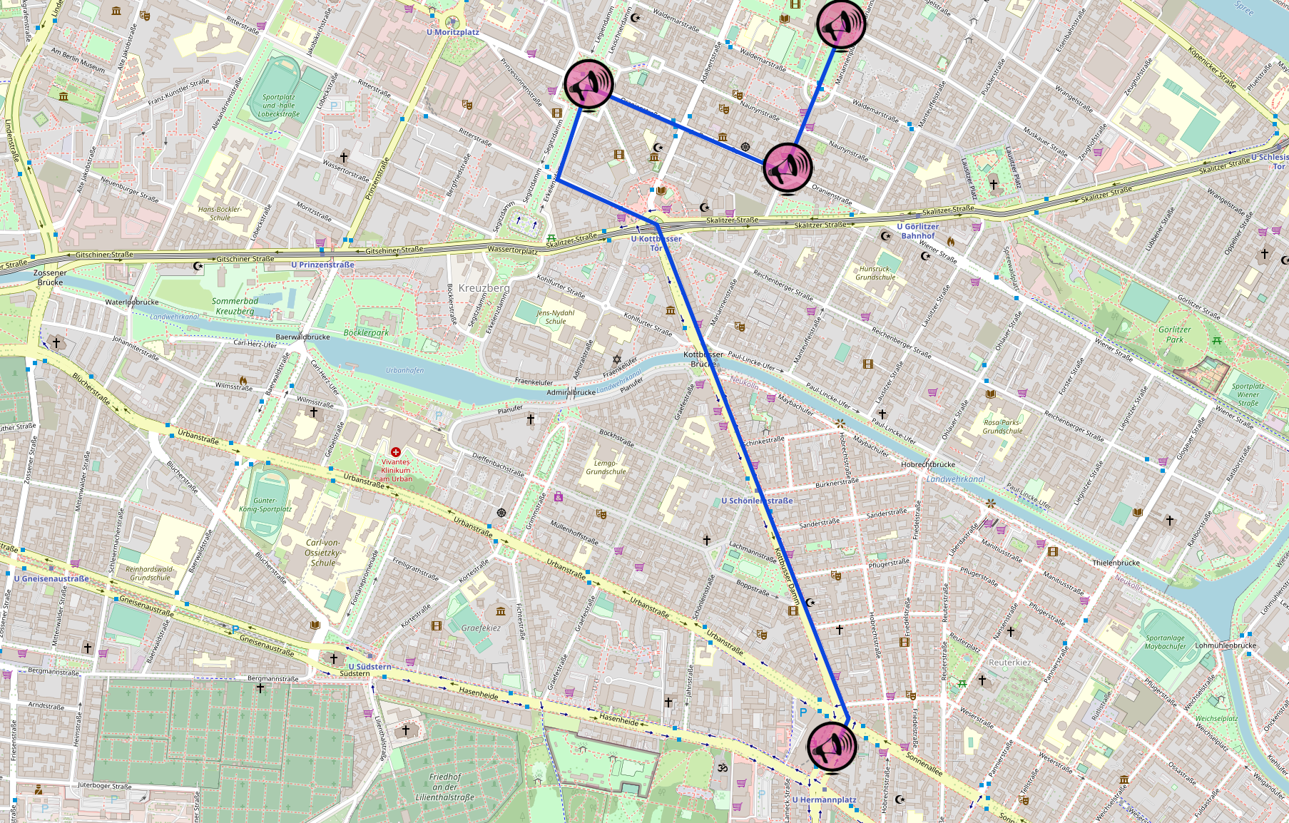 Kottbusser Damm, Kottbusser Brücke, Kottbusser Str, Kottbusser Tor, Reichenberger Str, Erkelenzdamm
