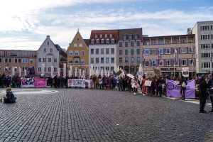 Etwas nicht ganz so Erfreuliches war dieses Jahr für uns die Präsenz der Gruppe „Sundays for life“. Diese Gruppe von Schwangerschaftsabbruchsgegner*innen wurde in Augsburg gegründet und agiert mittlerweile deutschlandweit und vor allem auf Social Media. Schon seit etwa einem Jahr demonstrieren die Anti-Choice-Vertreter*innen sonntags auf dem Rathausplatz gegen Schwangerschaftsabbrüche. Diskussionen in Form von direkten persönlichen Gesprächen mit Teilnehmer*innen der Demonstrationen gestalteten sich als schwierig.