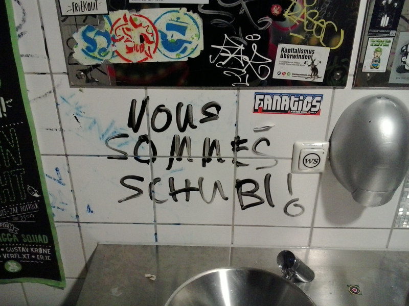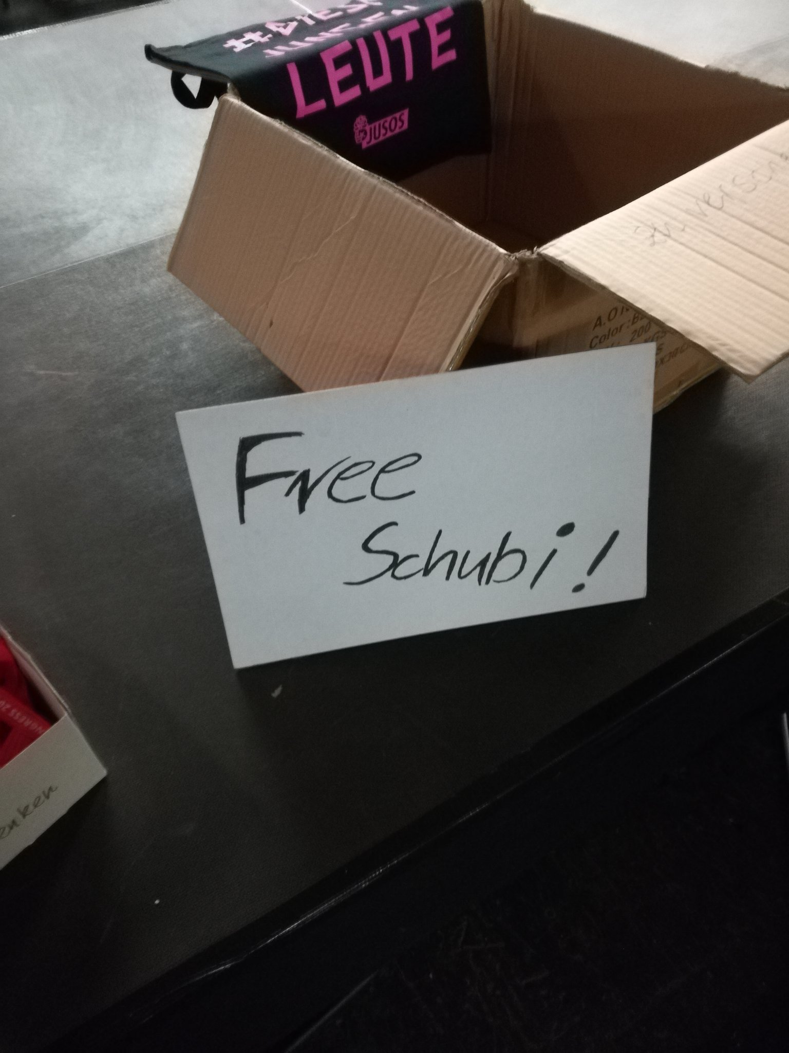 Wenn ihr auch Bilder von Tags, Sprühereien und anderen Soliaktionen geschossen habt, sendet sie uns bitte an unsere Emailadresse [email protected] oder verlinkt sie auf Twitter via @freeschubi oder #FreeSchubi