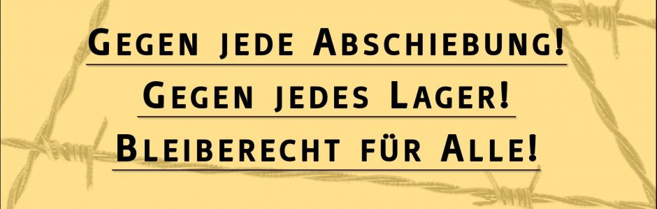 Wir setzen uns gerade in der gegenwärtigen Situation weiterhin gegen Lagerunterbringung und besonders gegen Abschiebungen ein. Wir organisieren jetzt erst recht Bürger*innenasyle, um Menschen zu schützen. Gerade jetzt muss das EU-Grenz- und Abschieberegime überwunden werden! Organisieren wir Solidarität von unten!