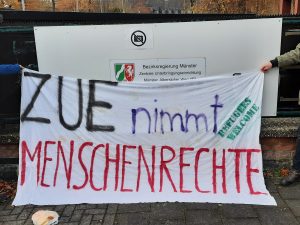 „Dass die Bewohner*innen nicht gegen die Kälte geschützt werden, sagt viel über die Zustände in der ZUE in Münster aus.“, so Karin Mäufer vom Bündnis gegen Abschiebungen.
