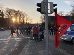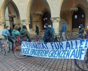 Am 27.11. nahmen ca. 80 Personen an den Kundgebungen und der Fahrraddemo für die Aufnahme der Menschen an der polnisch-belarussischen Grenze und gegen die Lagerunterbringung teil. Im Folgenden könnt ihr unseren Redebeitrag über die aktuelle Situation in der ZUE in Münster nachlesen: