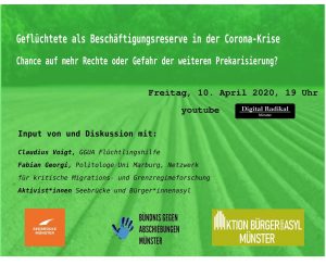 Eine Veranstaltung von Seebrücke Münster, Bündnis gegen Abschiebungen Münster und Initiative Bürger*innen-Asyl Münster auf #DigitalRadikal.