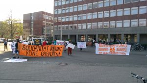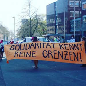 Kämpferische Redebeiträge verdeutlichten die Wichtigkeit der Solidarität mit Geflüchteten angesichts der katastrophalen Lage in den Lagern – nicht nur in der Coronakrise.