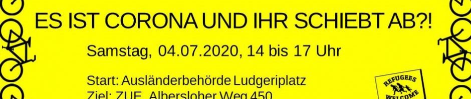 +++ Fahrraddemo Münster am Samstag, 4. Juli 2020, 14:00 bis 17:00 Uhr, vom Ludgeriplatz zur ZUE am Albersloher Weg 450 in Münster +++