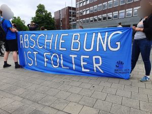 Am Samstag, den 04.07.2020 folgten ca. 100 Menschen dem Aufruf vom Bürger*innenasyl Münster, Seebrücke Münster, Münster Stadt der Zuflucht und uns sich an zwei Kundgebungen und einer Fahrraddemo gegen die Wiederaufnahme von Abschiebungen zu beteiligen.