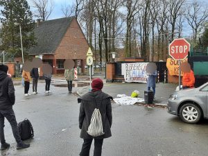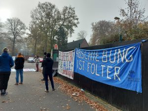 Am 22.12 fanden sich erneut Menschen vor der Zentralen Unterbringungseinheit am Albersloher Weg in Münster ein um sich mit den Bewohner*innen des Lagers solidarisch zu erklären.